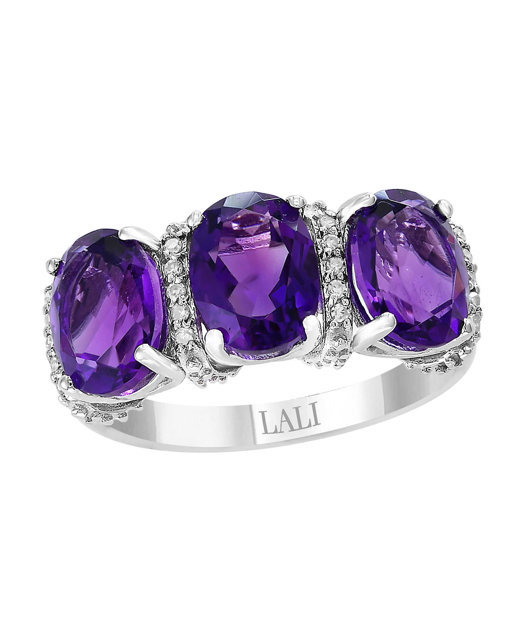 14K WHITE GOLD DIAMOND AND AMETHYST RING